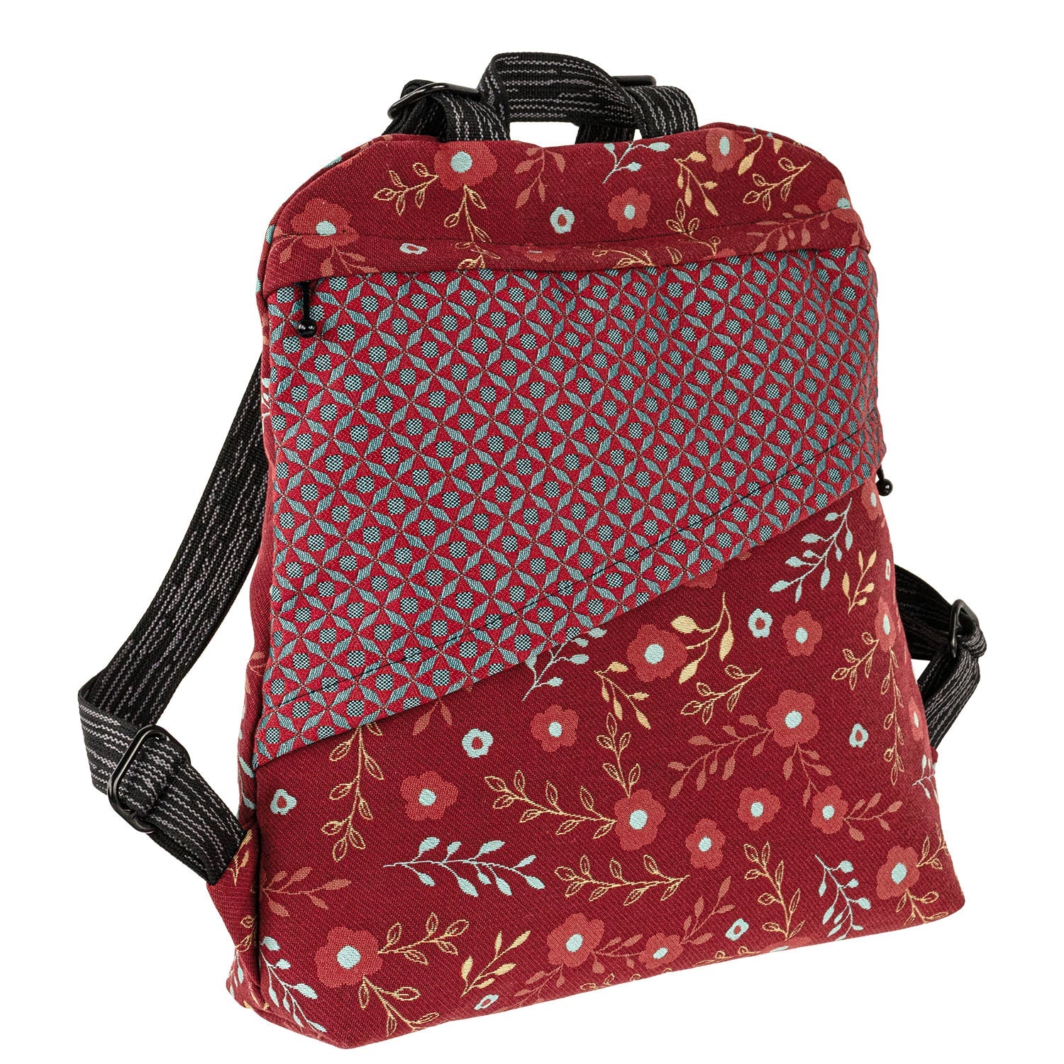 Finally! A backpack featuring an artsy appearance with urban function! Generous main compartment 11 inch deep with small interior pocket. Exterior zipped pocket 6 inch deep. Canvas lining interior.