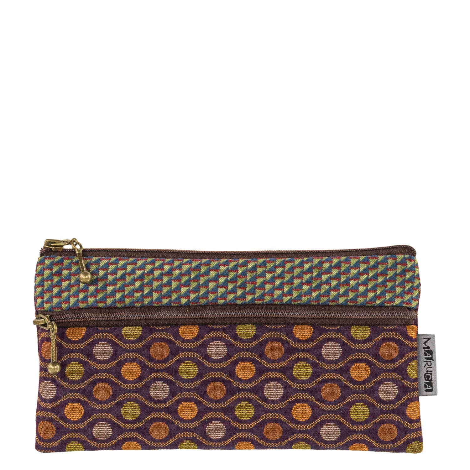 Why not add a little interest to the objects we use every day? Heidi wallet has a top zip compartment for checkbooks, receipts, cash and a front zip pocket for coins and miscellaneous wallet-ey items.
