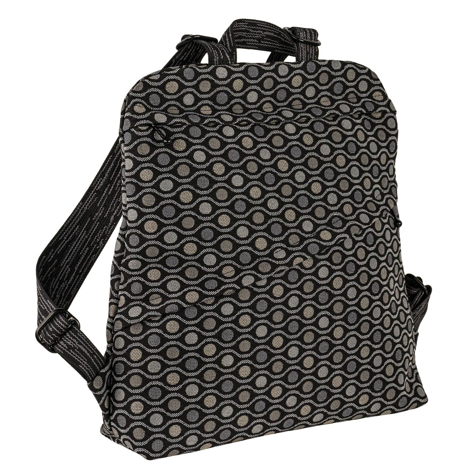 Finally! A backpack featuring an artsy appearance with urban function! Generous main compartment 11 inch deep with small interior pocket. Exterior zipped pocket 6 inch deep. Canvas lining interior.