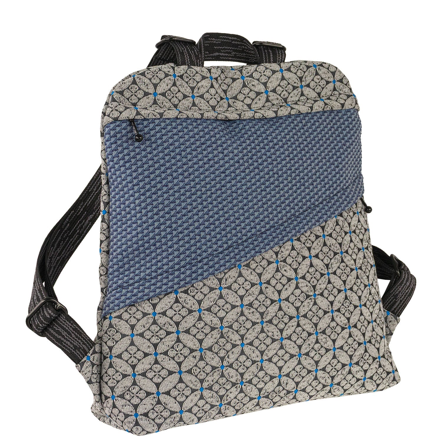 Finally! A backpack featuring an artsy appearance with urban function! Generous main compartment 11 inch deep with small interior pocket. Exterior zipped pocket 6 inch deep. Canvas lining interior.