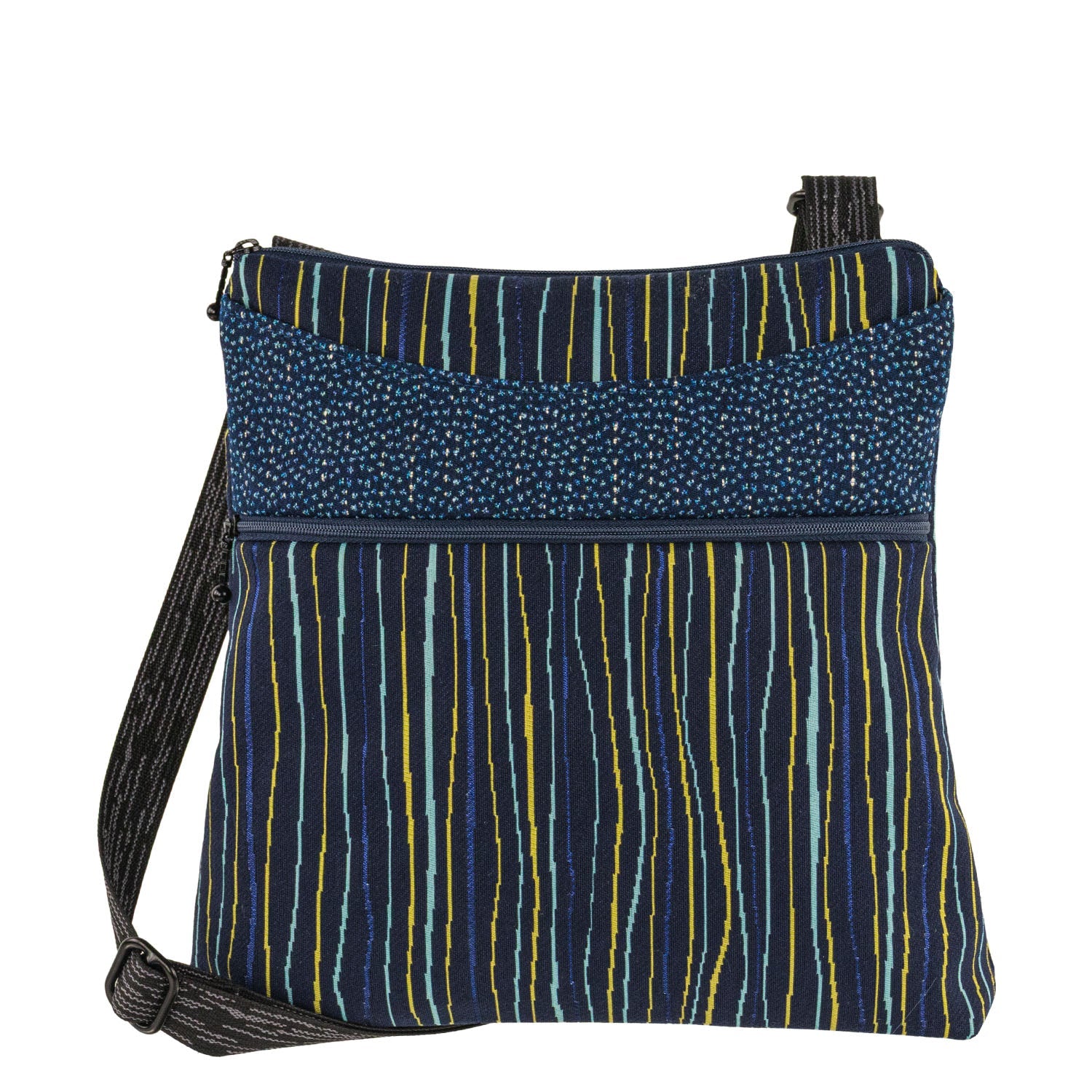 A top Favorite! The perfect big little bag! Soft adjustable custom strap! Generous interior, with small open pocket for lippy-goos. Top shallow open exterior pocket for quick easy access. Front zipped pocket. Generous open pocket on back, will hold a water bottle, great bag!