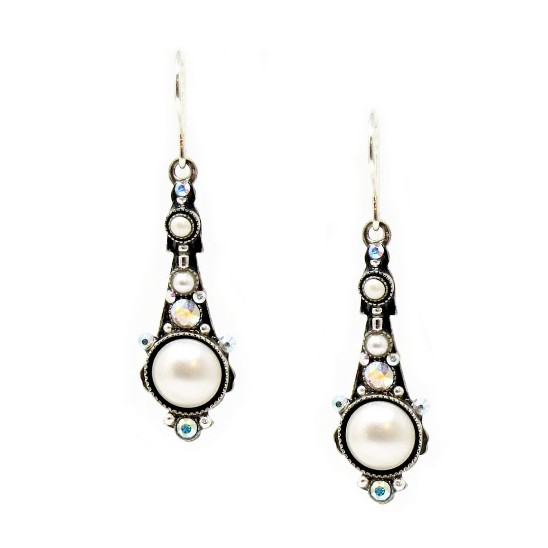 White Pearl Beach Glass Pearls Long Drop Earrings by Firefly Jewelry