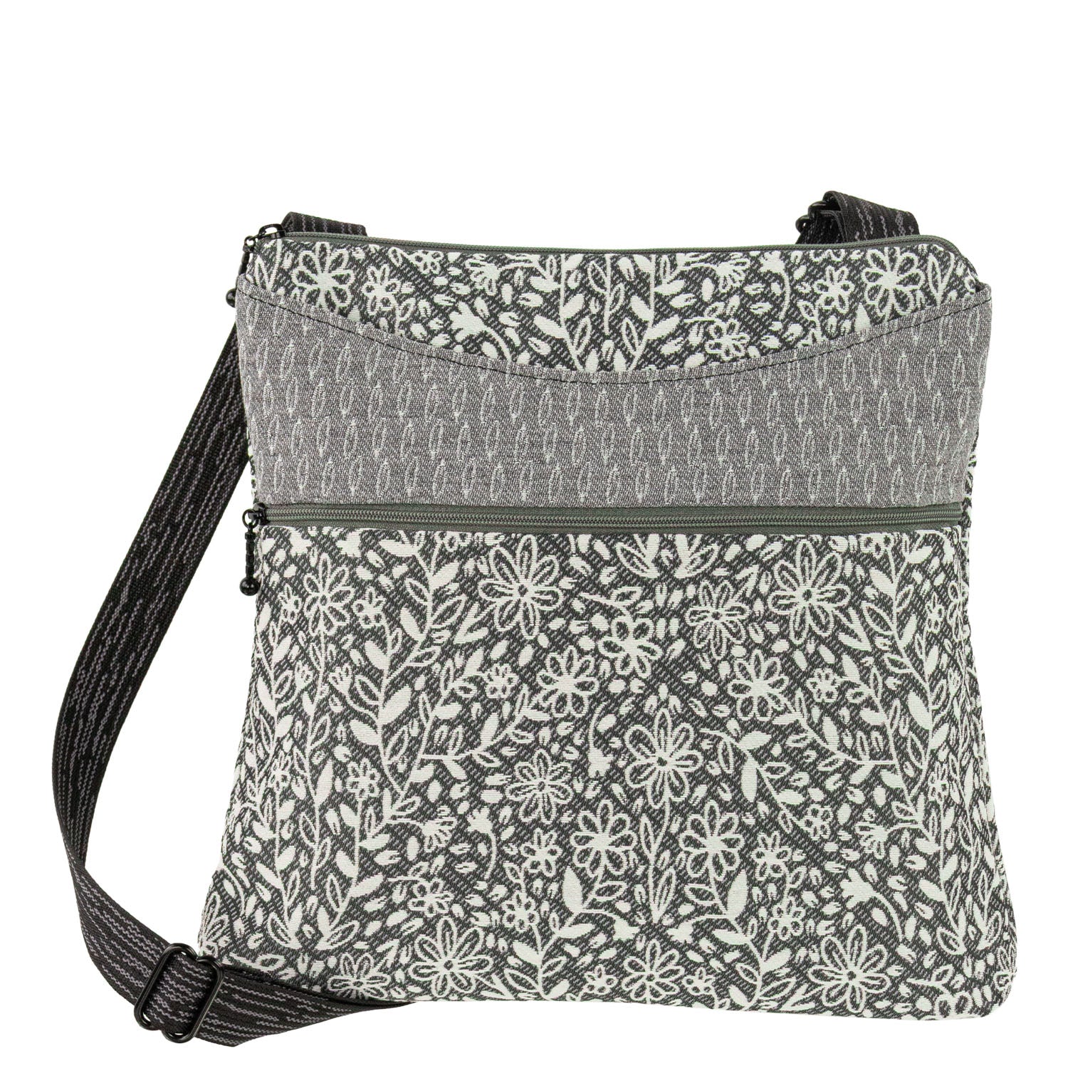 A top Favorite! The perfect big little bag! Soft adjustable custom strap! Generous interior, with small open pocket for lippy-goos. Top shallow open exterior pocket for quick easy access. Front zipped pocket. Generous open pocket on back, will hold a water bottle, great bag!