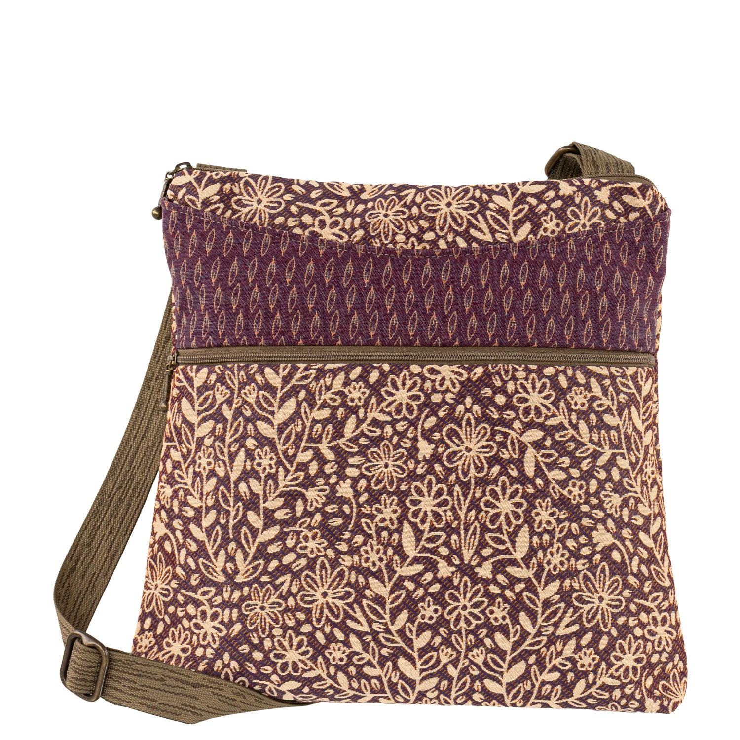 A top Favorite! The perfect big little bag! Soft adjustable custom strap! Generous interior, with small open pocket for lippy-goos. Top shallow open exterior pocket for quick easy access. Front zipped pocket. Generous open pocket on back, will hold a water bottle, great bag!